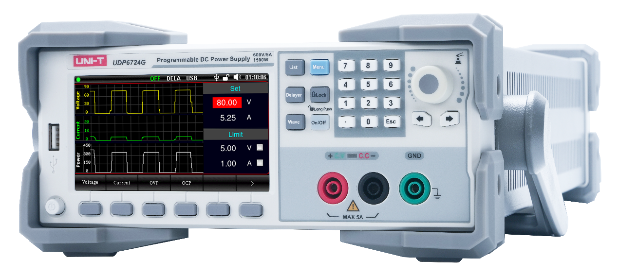 UDP6720G series programmable DC power supplies deliver high-voltage output in a compact design. Featuring a 4.3-inch TFT-LCD for intuitive operation, these units are suited for automated testing, R&D, laboratories, education, and device repair.