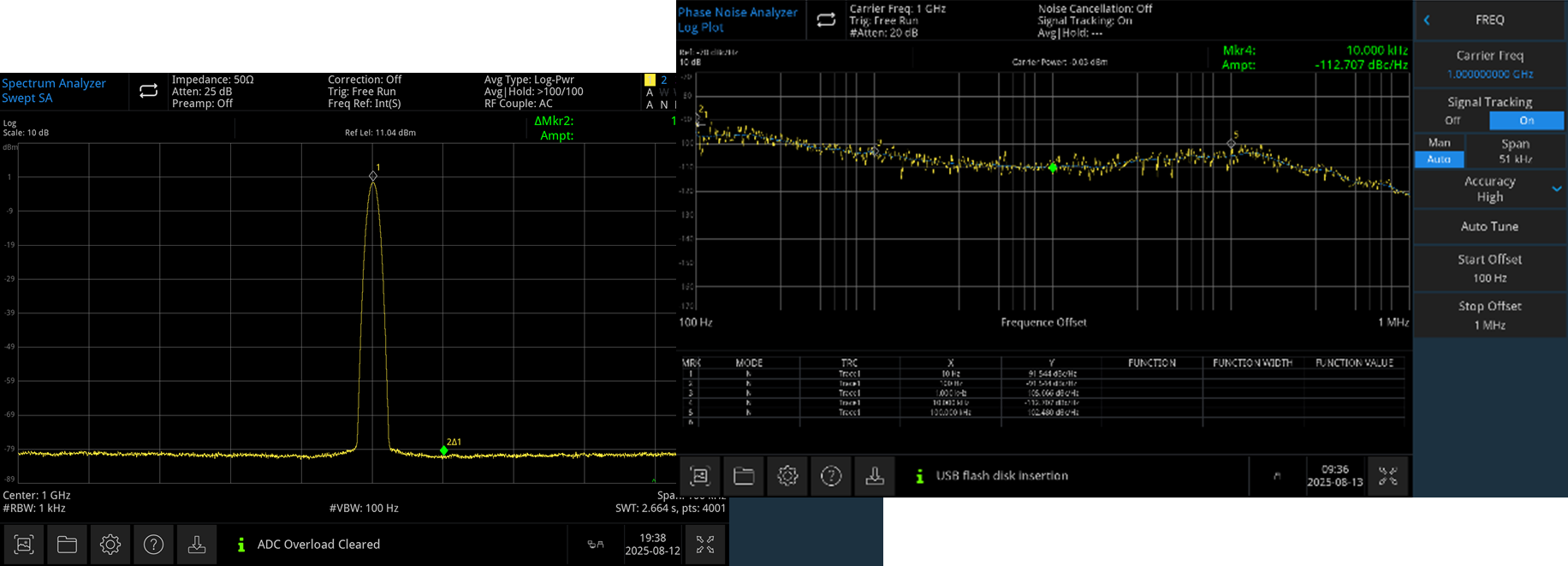 At a 1 GHz carrier frequency with a 10 kHz offset, phase noise is -110 dBc/Hz.