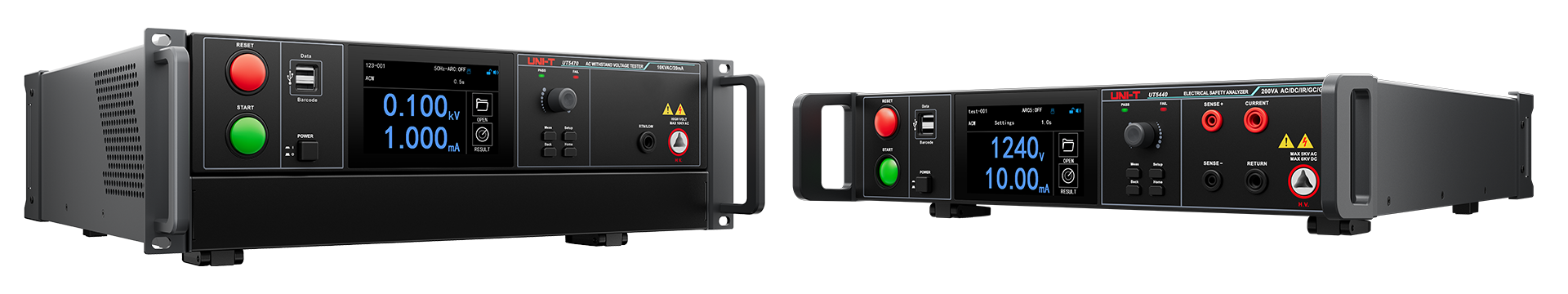 The UT5400 and UT5470 Series expand UNI‑T’s safety testing portfolio, addressing both comprehensive compliance testing and high‑voltage insulation verification.The UT5400 Series integrates essential safety tests for high‑power applications, while the UT5470 Series is purpose‑built for high voltage withstand testing. It offers AC capability up to 10 kV / 20 mA and DC capability up to 12 kV / 10 mA, along with precise leakage current measurement.